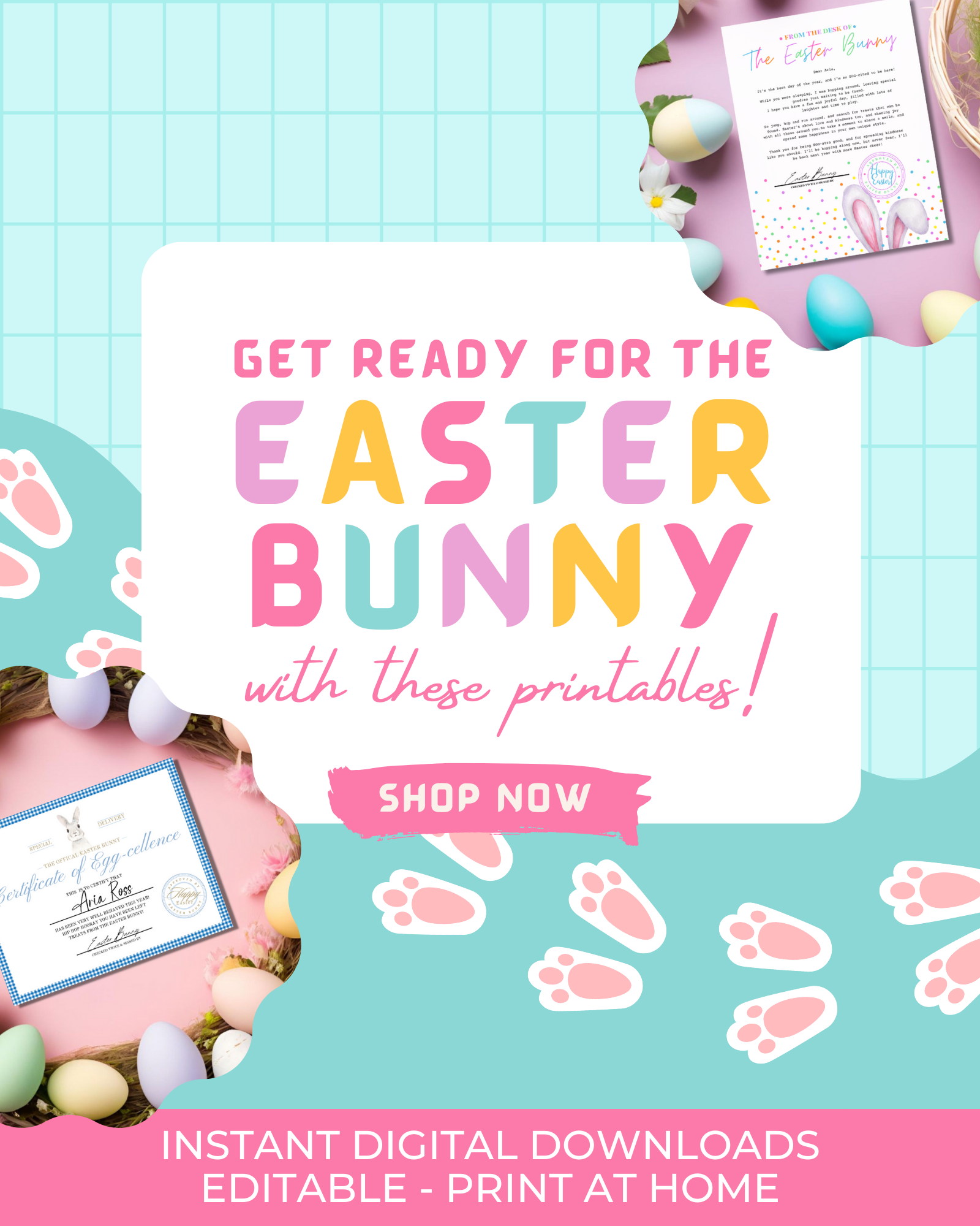 Easter Bunny Bundle – Colorful Bunny Bait Tag, Letter, Certificate, Gift Tags & Activity Pages