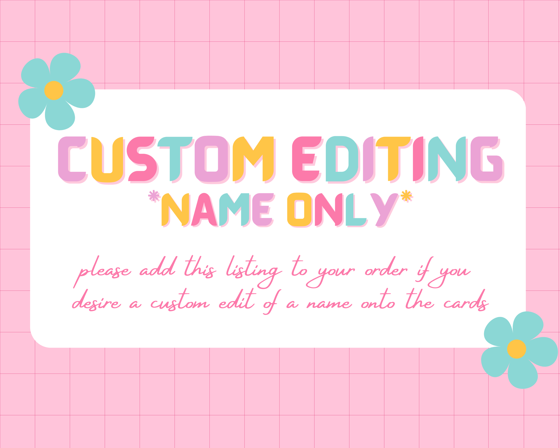 This listing is an add-on to your purchase, please purchase one with each item you would like us to personalize. Your personalized digital file will be emailed within 48 hours after purchase.