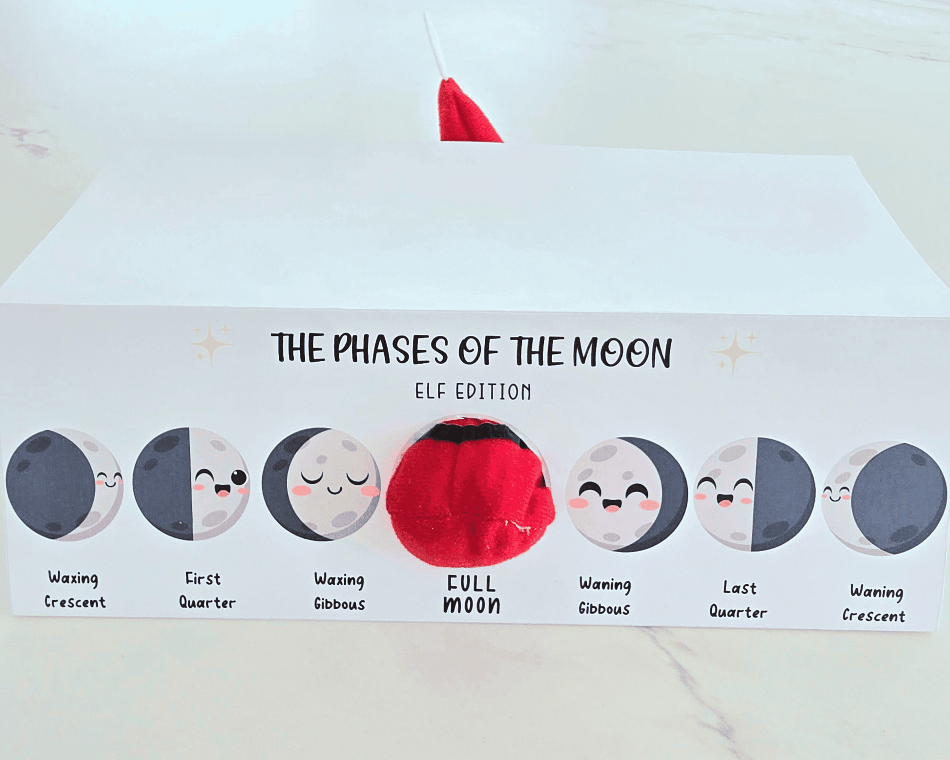 Bring a magical twist to your holiday setup with this Printable Elf Moon Phase Prop! Featuring printable elf moon phases props, this set is perfect for creating a fun full moon elf scene that will make everyone smile. Add it to your printable elf kit for a unique, whimsical touch, or use it as part of your elf arrival for a memorable start to the season. These printable elf props make for an easy and funny elf idea that will delight both kids and adults alike.