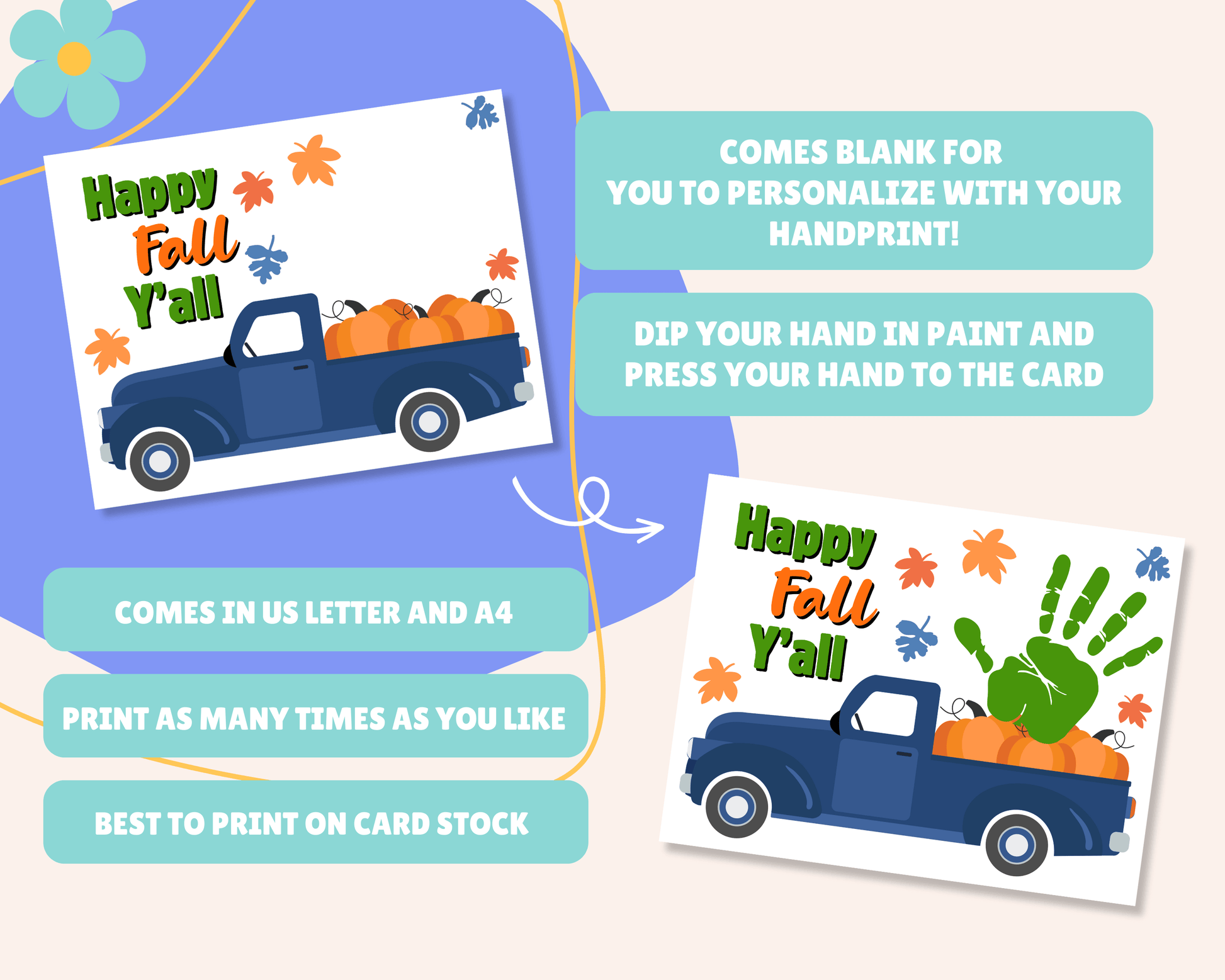 Get creative this season with this Happy Fall Y'all Handprint Craft. This autumn handprint craft is perfect for preschool classrooms, daycare art activities, or cozy afternoons at home. This printable makes it easy to create memorable fall handprint art. Whether you're planning a preschool or daycare activity, or just looking for a cute autumn handprint craft, this printable makes crafting simple and fun.